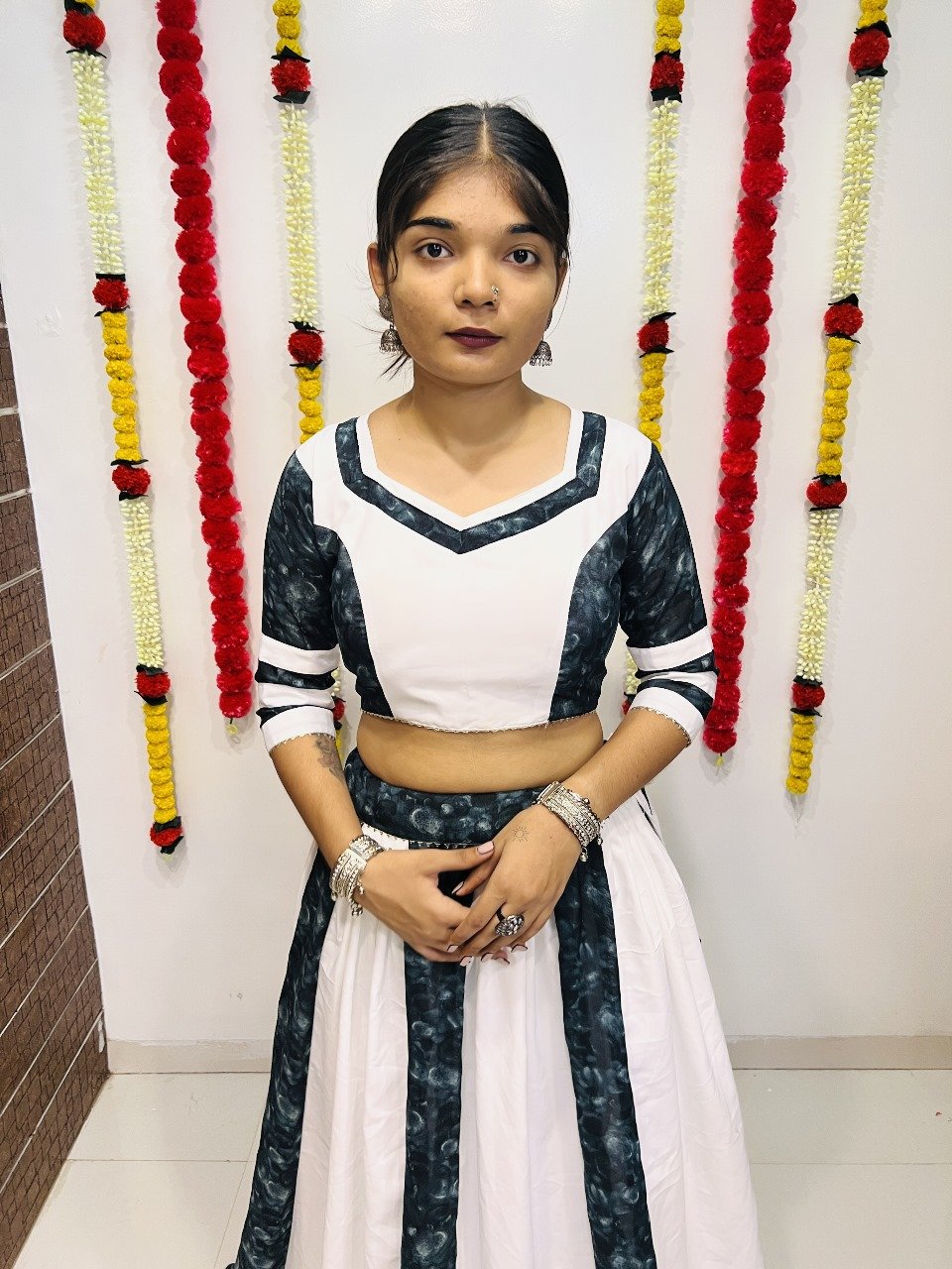 LEHENGA COLOR: WHITE & DARK SKY